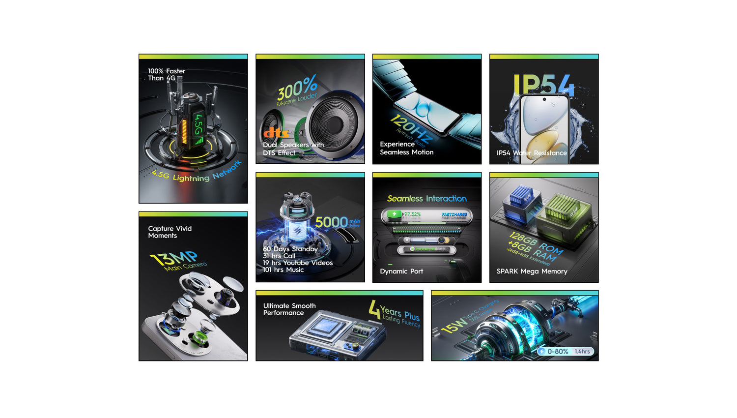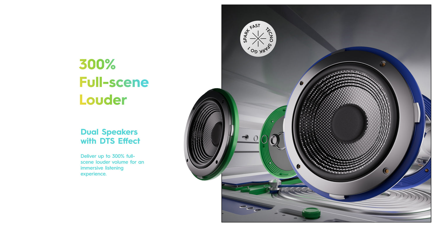 Experimenta un audio inmersivo con altavoces duales y efecto DTS, ofreciendo un volumen hasta un 300% más fuerte para sumergirte en cada detalle.